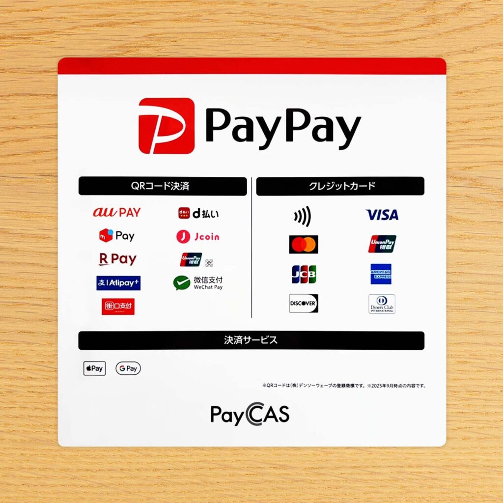 ともに、各種クレジットカード、au PAY、d払い、メルペイ、PayPay、楽天ペイ、Alipayでのお支払いが可能です。