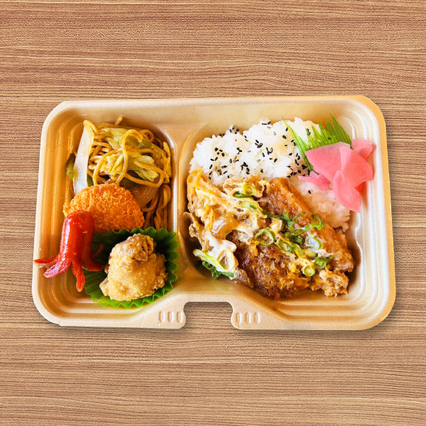 焼きそばとかつ丼が入ったお弁当!